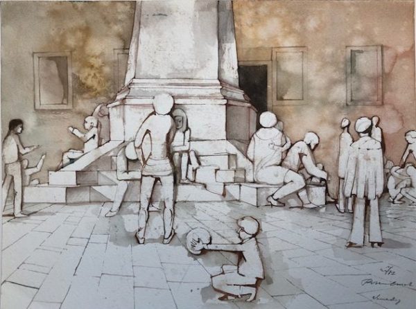 Menschen am Obelisk in Venedig